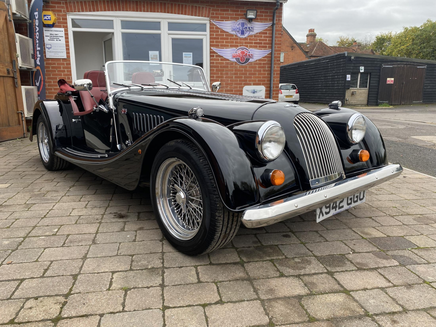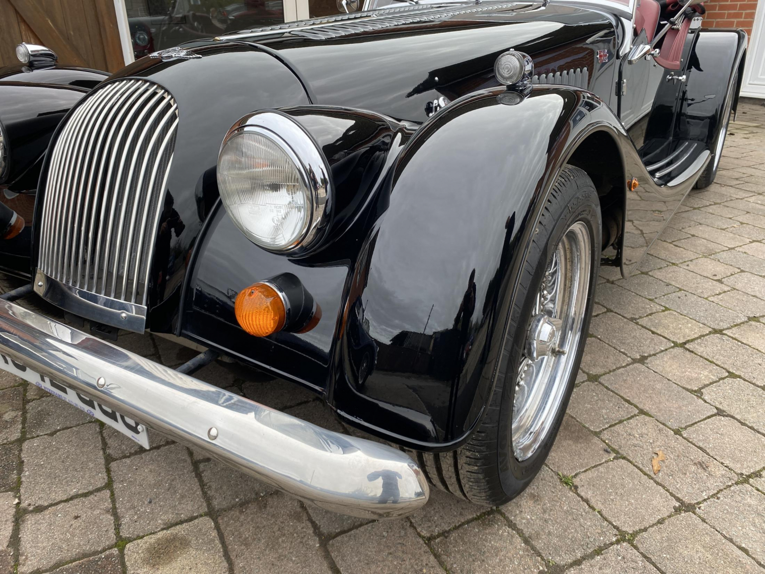 Finished in gloss black with burgundy leather trim, piped in black with matching burgundy weather gear, this Plus 8 is both elegant and purposeful.
